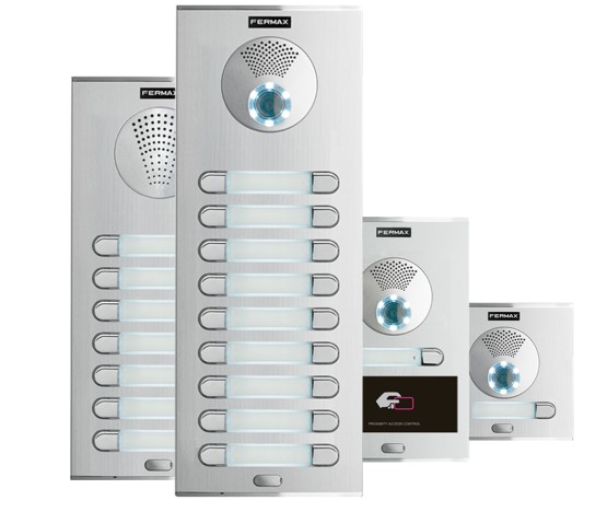 MARINE, darbelere dayanıklı FERMAX görüntülü kapı girişi panelidir. 2,5mm kalınlıkta paslanmaz çelikten yapılmıştır.